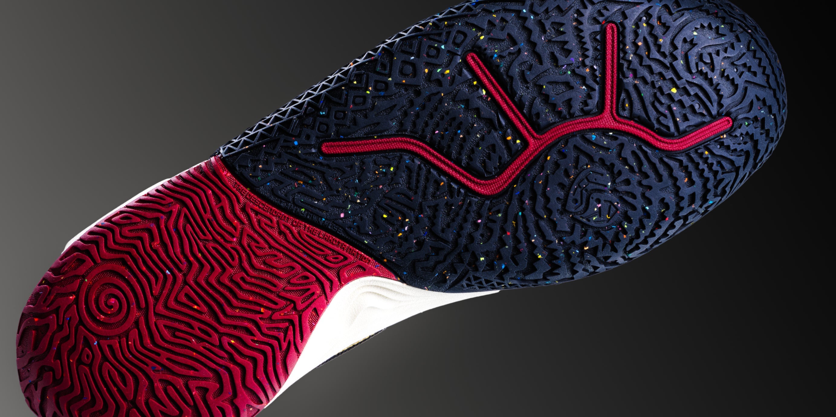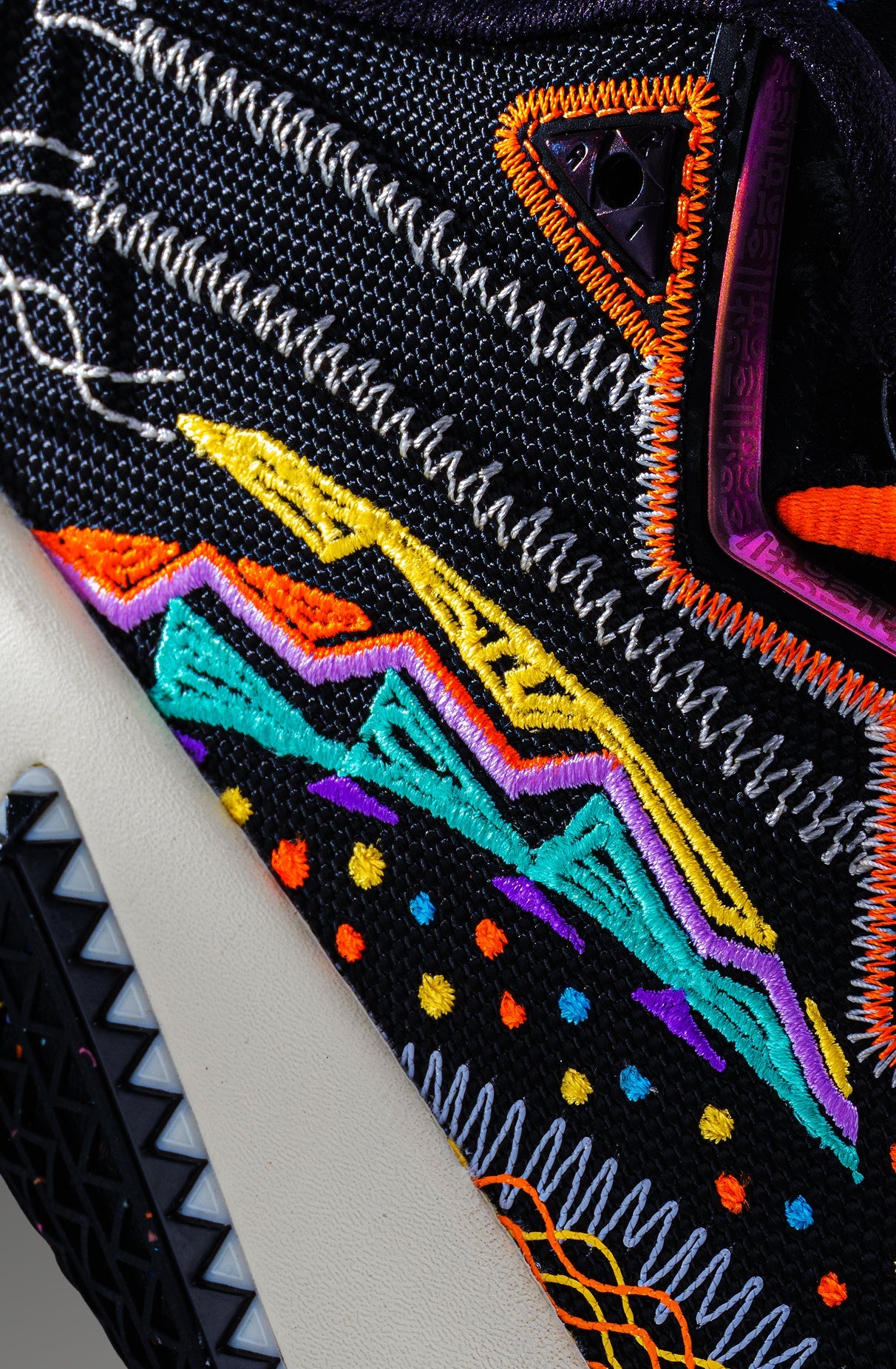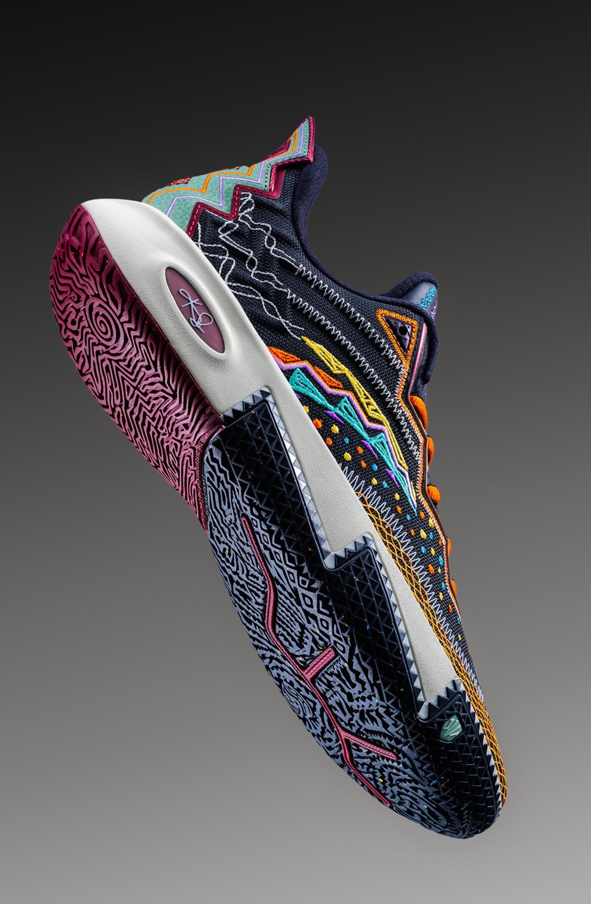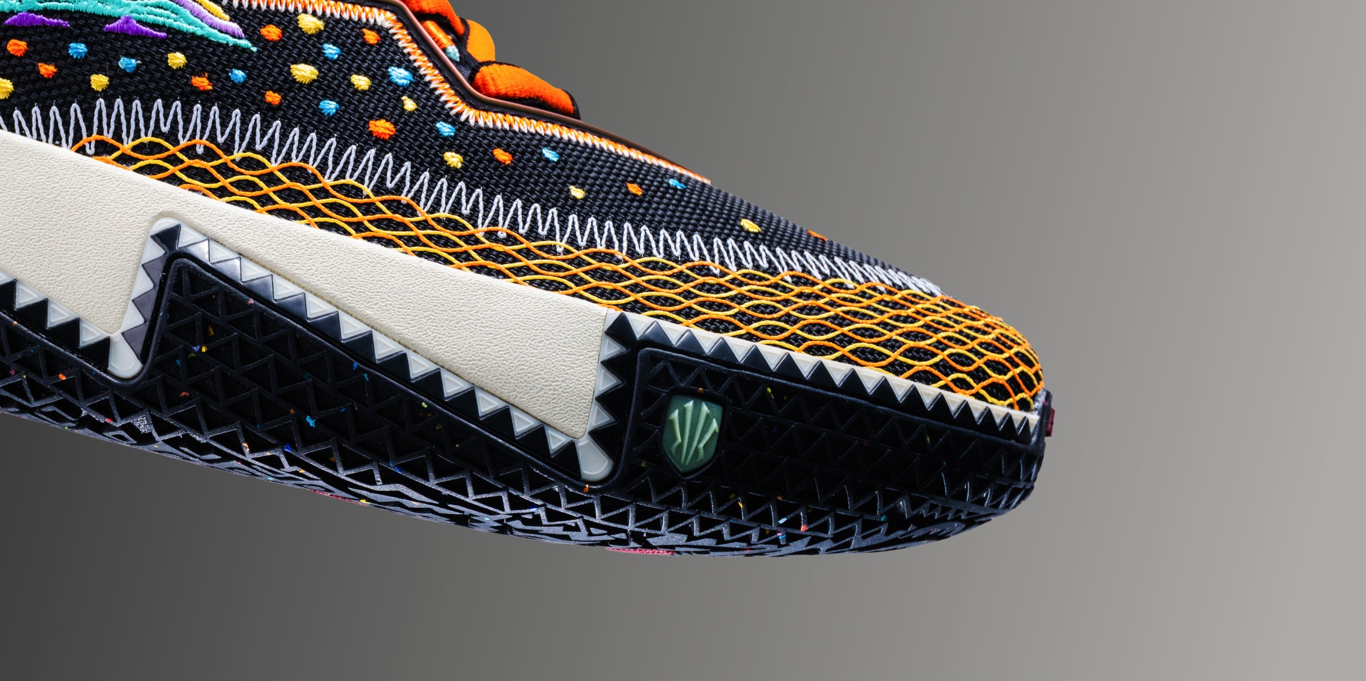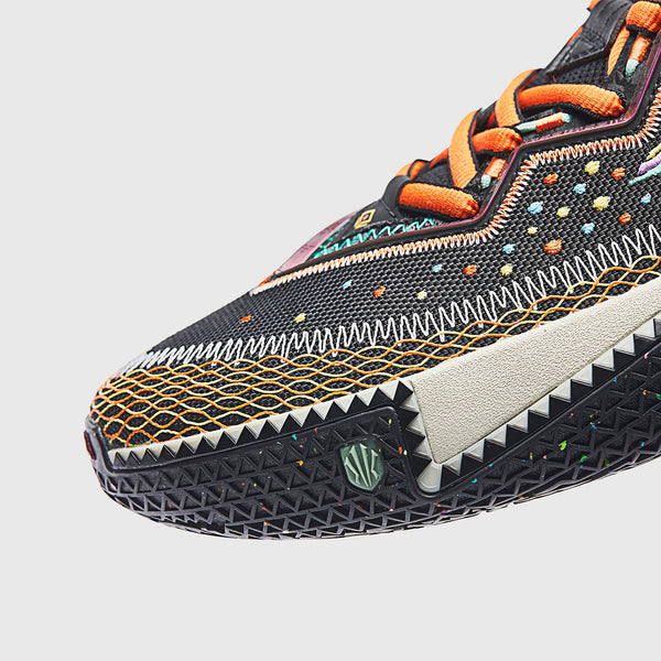 Multi-colored dots across the shoe represent the smallest form of light—particles—symbolizing Kyrie’s presence on the court: brilliant, fluid, and omnipresent.