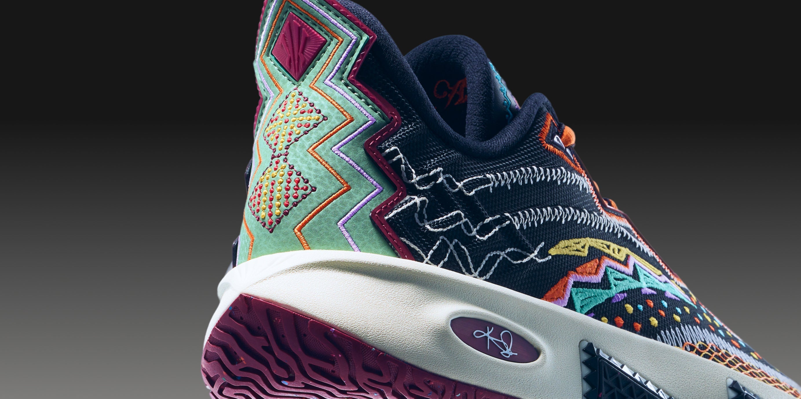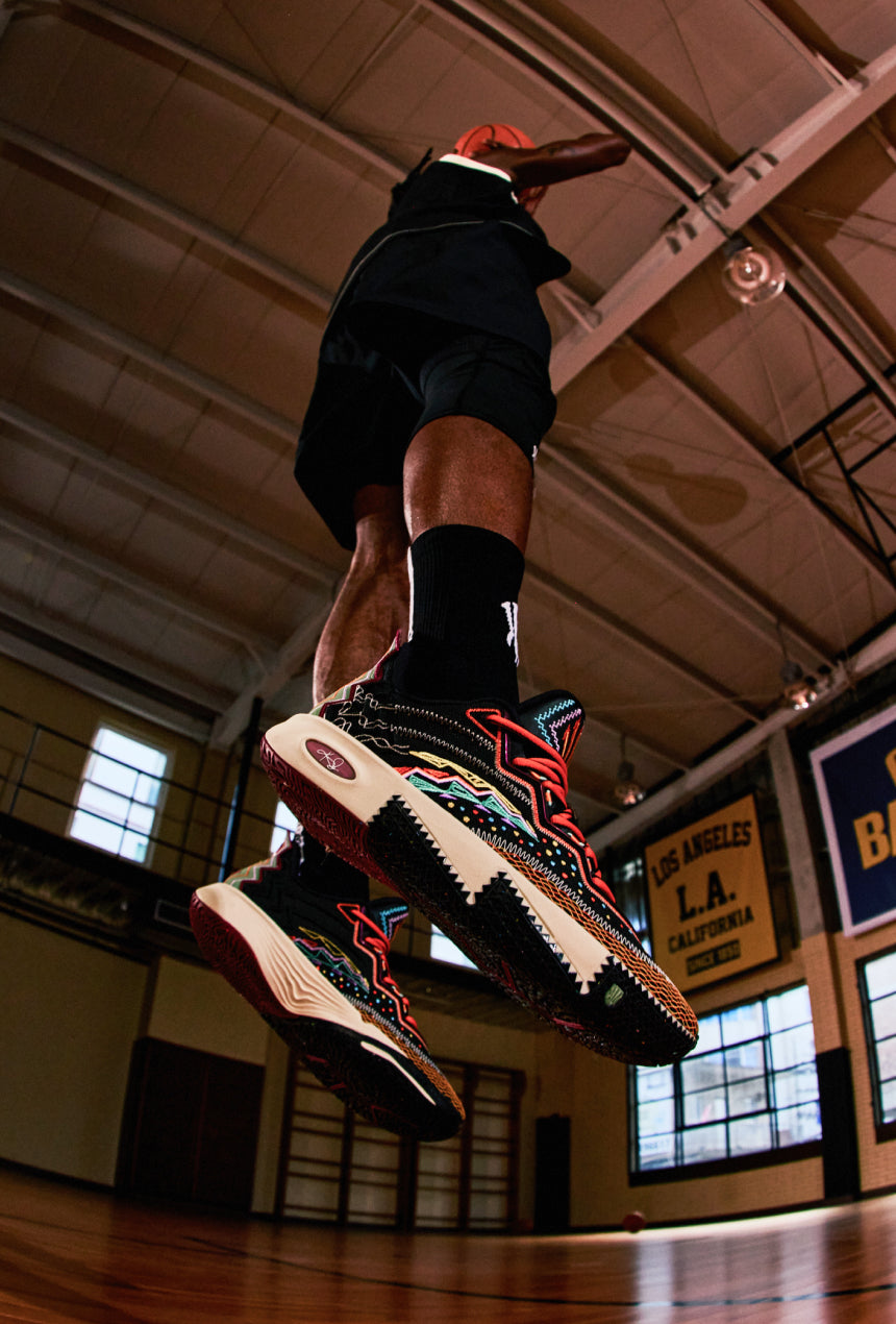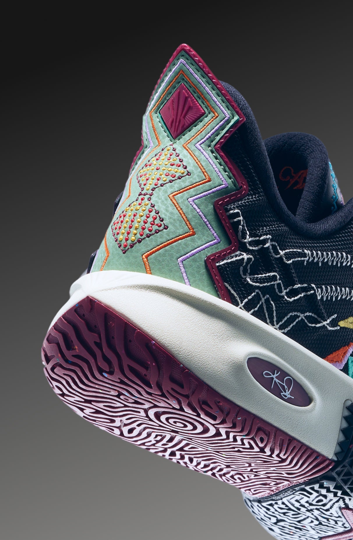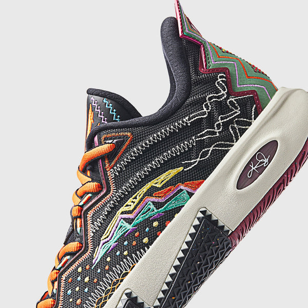 The intricate embroidery pays homage to traditional hand-stitched ethnic designs while incorporating the sun and Kyrie’s signature number 11.